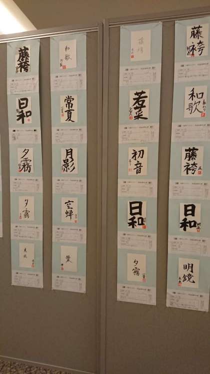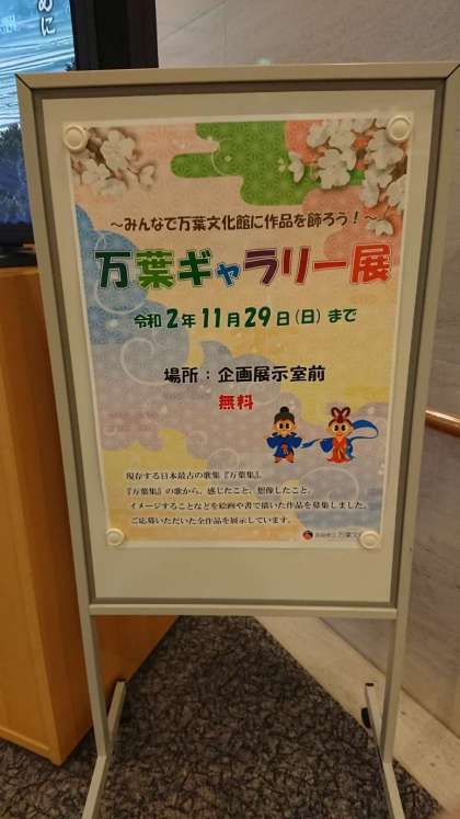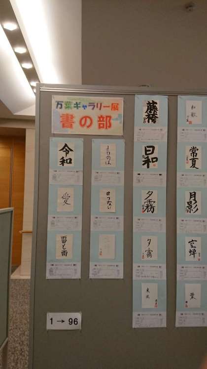 昨年の冬に書道部で応募した、万葉集に関する言葉の「書」の部門の作品が万葉文化館に展示されています。