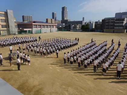 暑い中、生徒会役員を中心に全校集会が行われています。