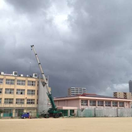 なんと、本校の体育館に空調が設置されます。竣工予定は今年の12月頃です。