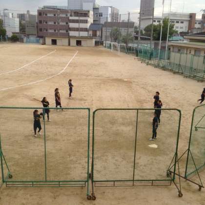 グランドでは、朝早くからソフトボール部とテニス部が練習をしています。