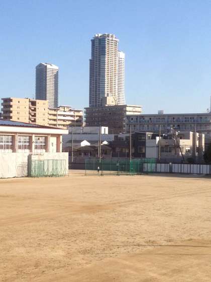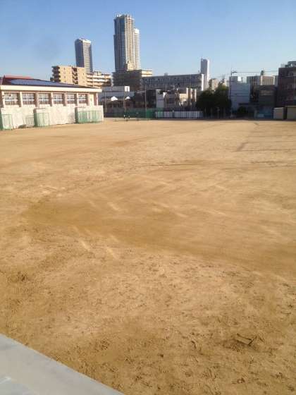 グランドではテニス部、体育館ではバドミントン部が朝の練習をしています。