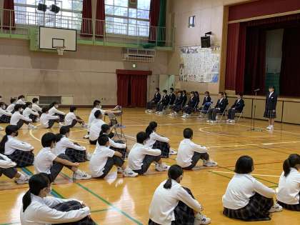 最後に体育館全体の写真を2枚と、教室で選挙管理委員が全体に説明をしている写真です。