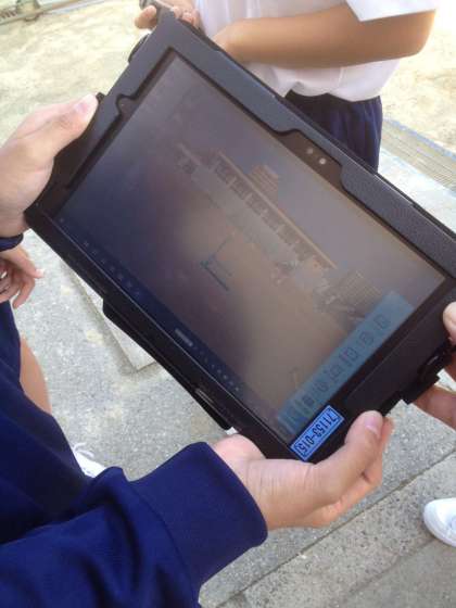 班毎にタブレットを使って、自分たちのハードルの動きを確認しています。