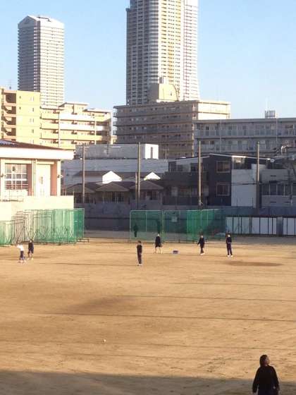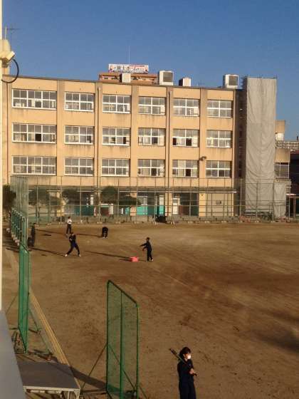 グランドでは、ソフトボール部、テニス部、野球部が練習しています。