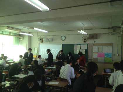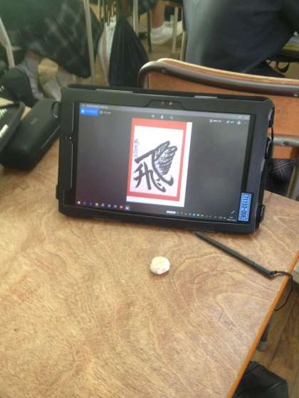 生徒たちは個々にタブレットを使って、文化祭での取り組みの書道の作品を閲覧しています。
