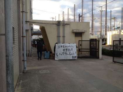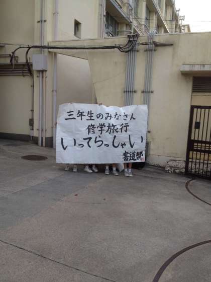 生徒の集合時間は7:00でしたが、書道部の2年生の生徒は6:30頃に登校してお見送りのスタンバイをしています。ありがとう!