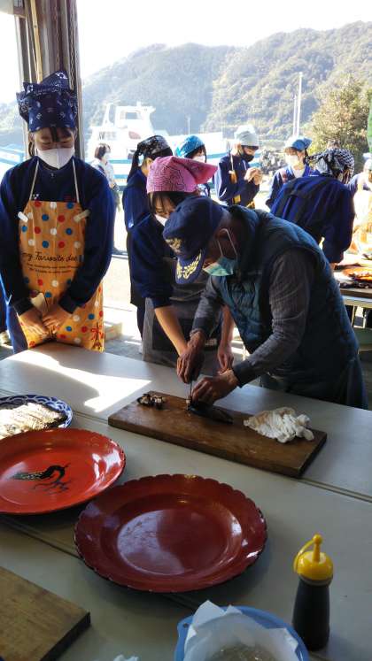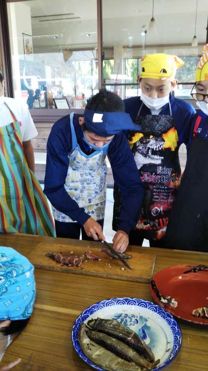 藁やきを終えてカットしています。