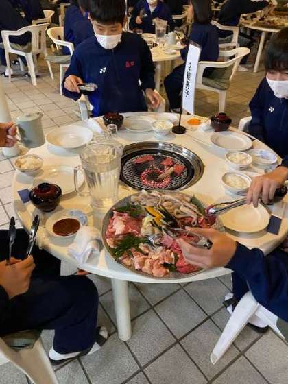 お肉、イカ、野菜、ご飯、マンゴープリン
