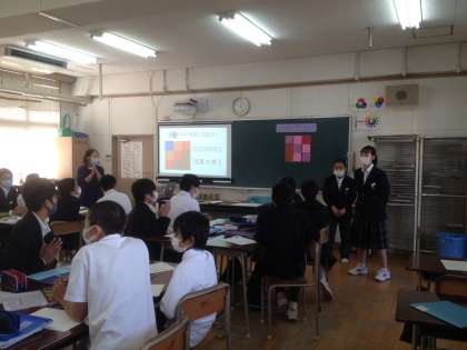 続いて各班ごとの発表です。色など感じ方も人それぞれ。生徒たちは、みんなの意見や発表からたくさん学ぼうといったねらいです。