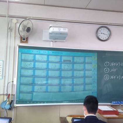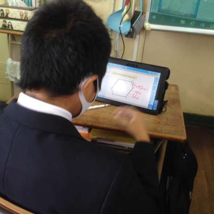 クラスメイトの答えを確認中です。生徒たち全員が主体の授業展開です。