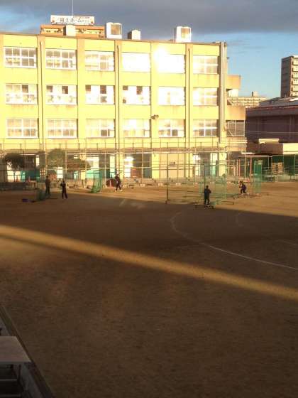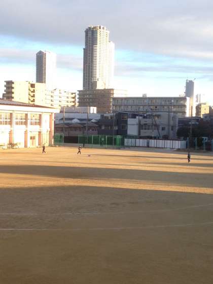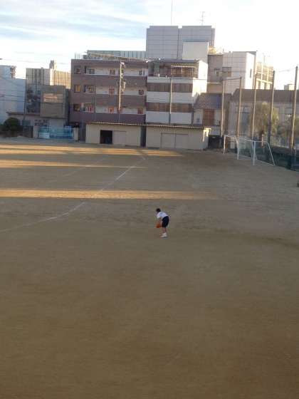 気温は8〜13度です。グランドでは野球部とテニス部が朝の練習をしています。
