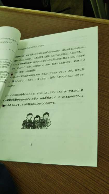 性教育の学習では、冊子を使い「生命誕生」について学習しています。