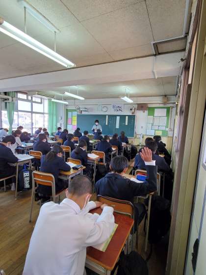 1限目の道徳では国際理解について考えました。ボランティア活動は相手のことを考えることが大切だという意見がありました。真剣な眼差しで授業をうけていました。