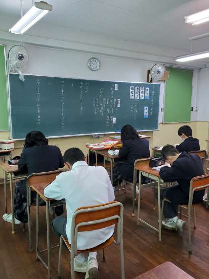 1組さんの2限目は国語B。みんなで例文を作って、これまでの文法の復習をしました。1組さんは発表の手がよく挙がります!