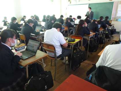 特活では一人一台タブレットのクロームブックの「クラスルーム」の機能を使用しました。