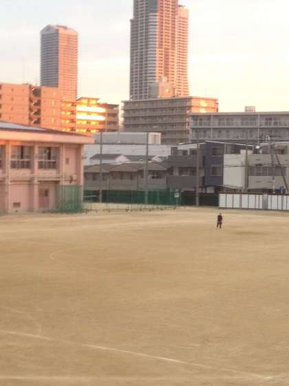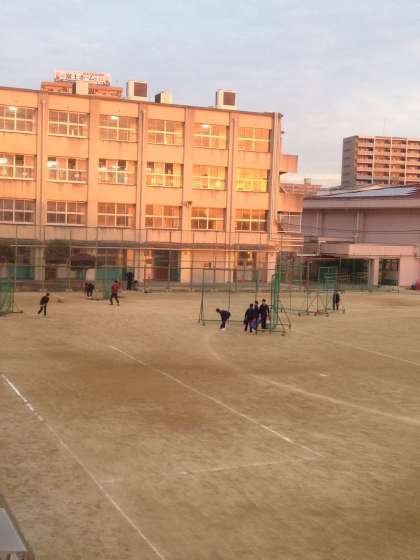 港南中学校のグランドでは野球部が、体育館ではバドミントン部が朝早くから練習をしています。