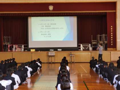 4月にある一泊移住の説明がありました。1年生の間に行けなかった分、充実した活動にしたいと思います。1年生はしっかり話を聞いていました。