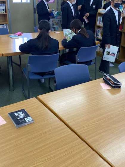 図書室にて 読みたい本を探しましょう。