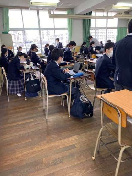 一人一台パソコンを使い、毎朝と帰りの学活で、自分の心の天気を入力します。