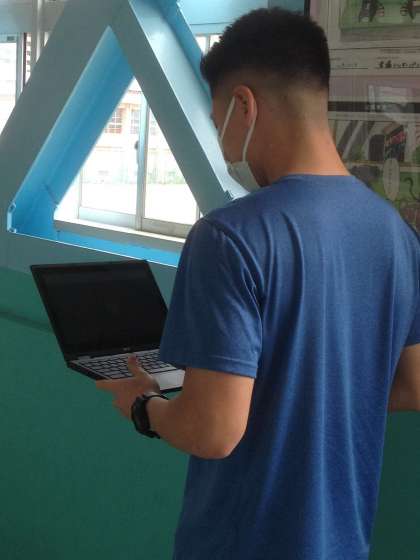学年の先生方も校内のあちこちで、音声を確認しています。