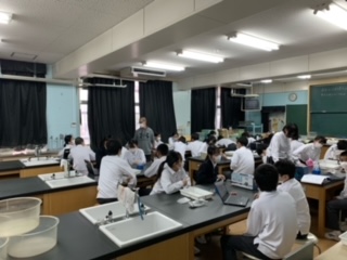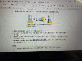 2年生の理科の授業で水の電気分解の実験を行いました。発生した気体は何かと興味津々に取り組んでいました。