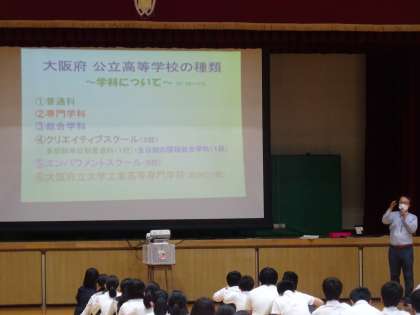 保護者の方向けのものは、動画にて一人一台情報端(タブレット)から視聴できるようになっております。進路の冊子と合わせてお子様に、お渡していますので、お時間のあるときによろしくお願いします。