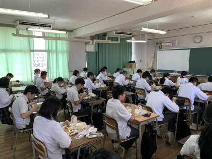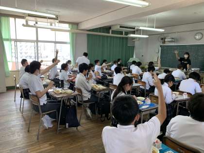 2年生の給食の様子です。今日も各クラス美味しくいただきました。