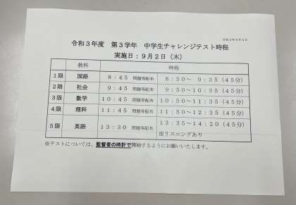 3年生 チャレンジテスト