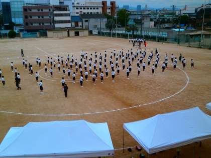 2年生が体育大会に向けて、学年練習をしている様子です。
