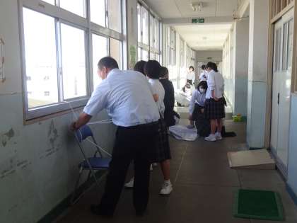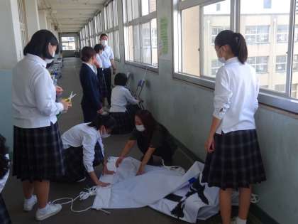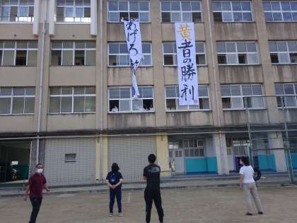 生徒会・書道部で体育大会の垂れ幕を設置しました。
