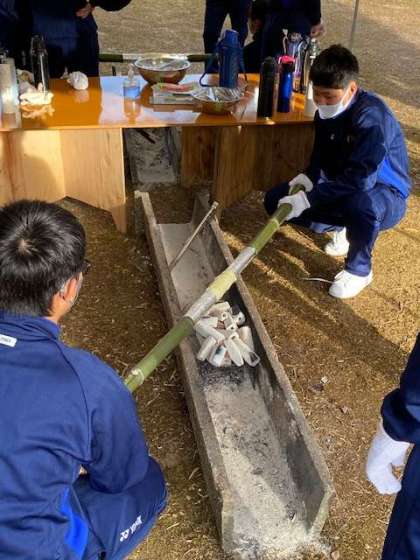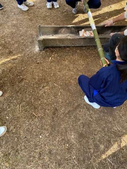 竹を回しながら、焼いています。