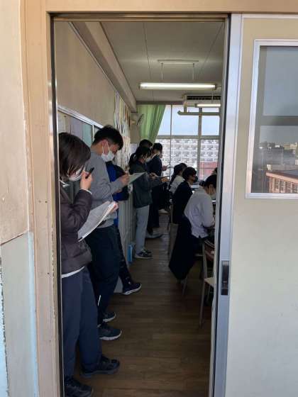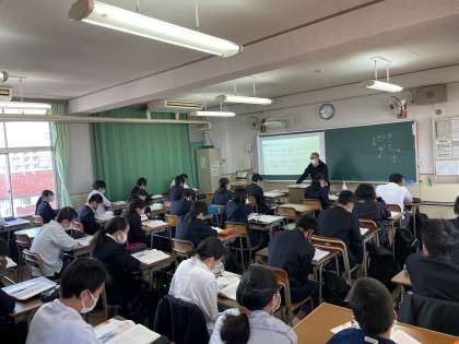 1限、道徳の授業での研究授業です。校内外からたくさんの先生が参観し研鑽しています。