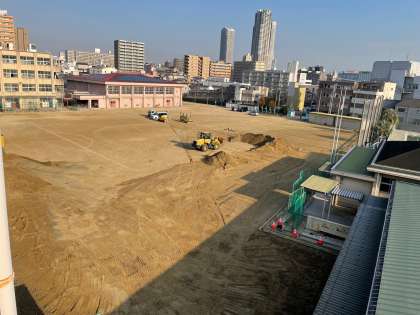 グラウンドの水はけ改良の工事をおこなっています。令和4年2月20日頃まで続きます。