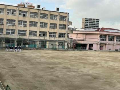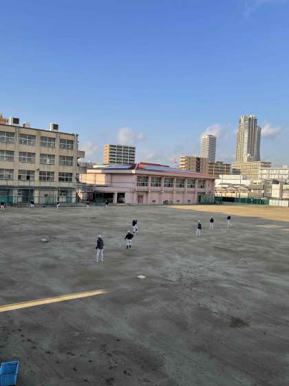 グラウンドの排水整備工事が、ようやく完成しました。野球部の大きな声が響いています。