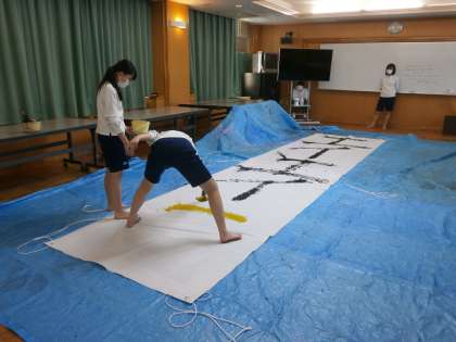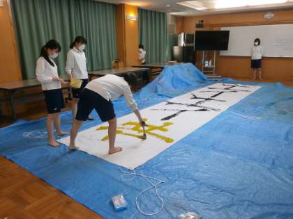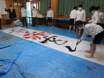多目的室では書道部が体育館のスローガンを作成してくれています。