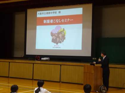 1時間目に菅公学生服の方をお呼びして、制服についてのお話をしていただきました。