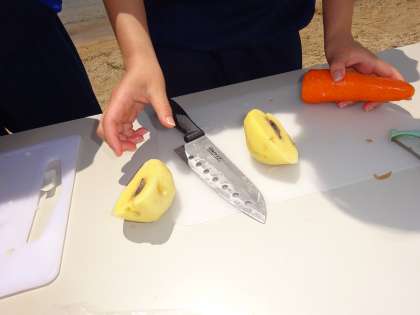 食材をカットしてくれている生徒たちもどんどんすすめてくれています!