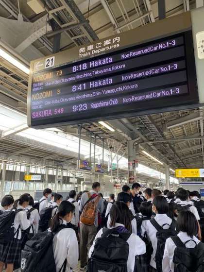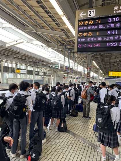 修学旅行 新大阪駅ホームへ