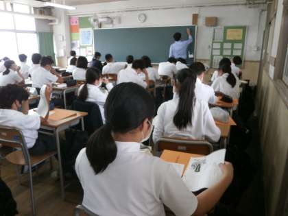 続いて3・4組の様子と生徒たちが使った教材の写真です。