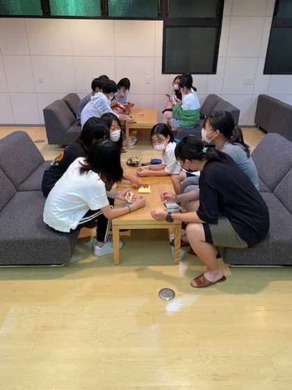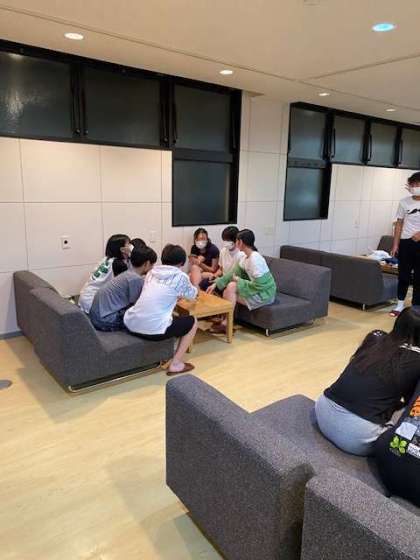 修学旅行 29 ロビーでくつろいでいます。