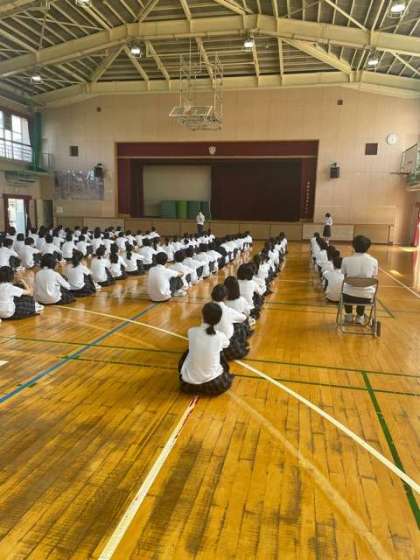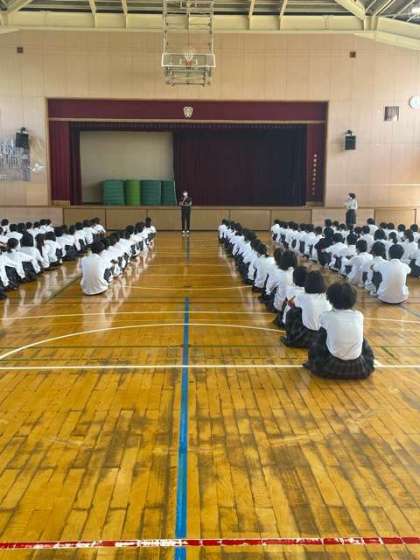先生より色々な物事に触れて、好きなものを見つけて欲しいというお話と、委員長会より、朝の時間の使い方とテスト前の学習についてのお話でした。