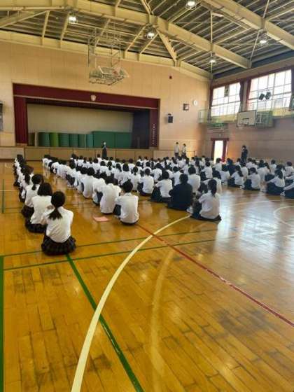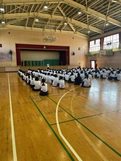 本日は特別に1年生の先生から、「親切な声かけ」のお話と、委員長会の取り組みについてのお話でした。