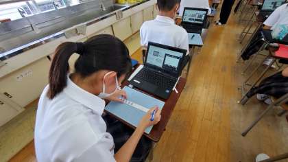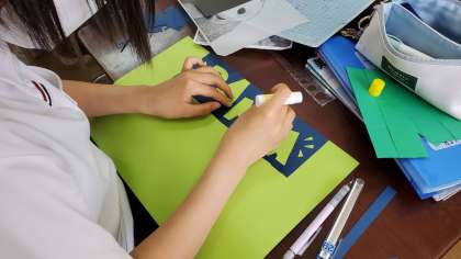 美術の時間は文化祭に向け作品を作っています。