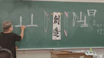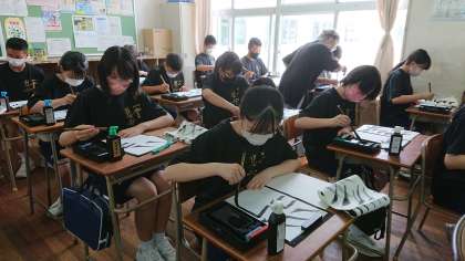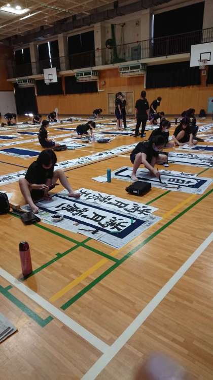 午前中は筆の使い方の講義で、午後からは条幅の作品を作っています。
