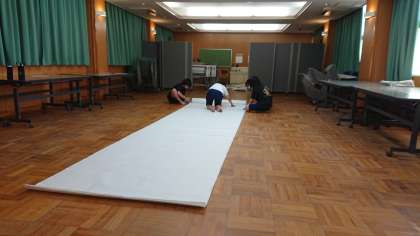 あの派手な書道パフォーマンスの裏には、こんなコツコツとした地味な作業があります。