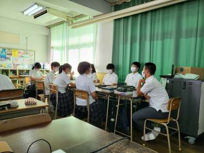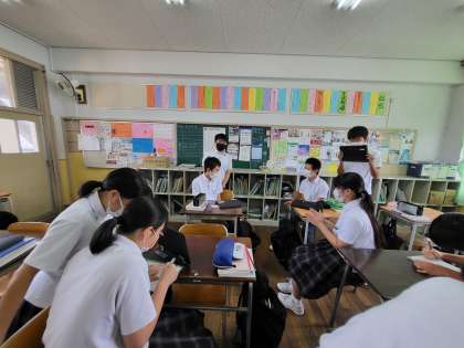 国語の授業で「希望」について話し合いました。話しやすい雰囲気を大切にしながら取り組んでくれていました。まだまだ自分の意見を言うことに自信がなさそうな人もいましたが、盛り上がっている班もあり、経験を重ねていってほしいと思います。