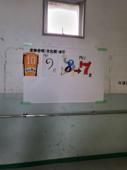 今日から文化祭に向け、パート別の合唱練習が始まりました。委員長さんからの発信です。画像は自主的に参加してくれたテノールメンバーと委員長さんたちの手作りカレンダーです。