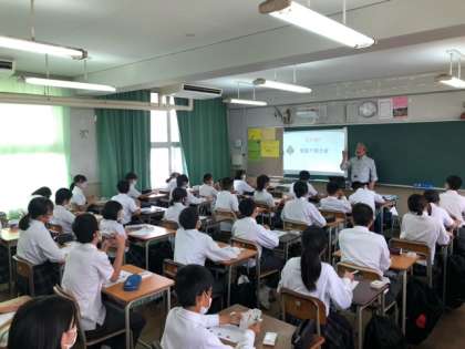 以前に2年生の各クラスでも授業をしていただいたのですが、本日は1年生の各クラスで行われています。とても賑やかに自己分析を楽しんでいました。