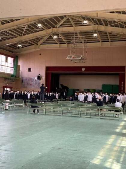 59期生の晴れやかな、卒業証書授与式に向けて、心をこめた歌声が響きます。