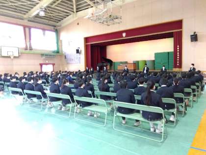 3年生が卒業式の練習に取り組みました。最初は緊張してぎこちなかったですが、次第に動きを覚え、自信を持った動きになりました。歌声も楽しみです。